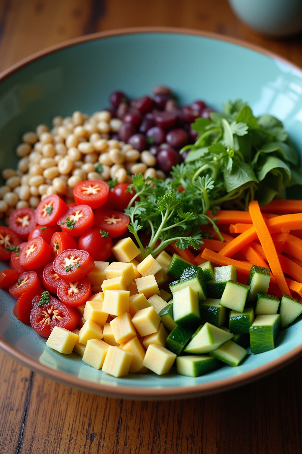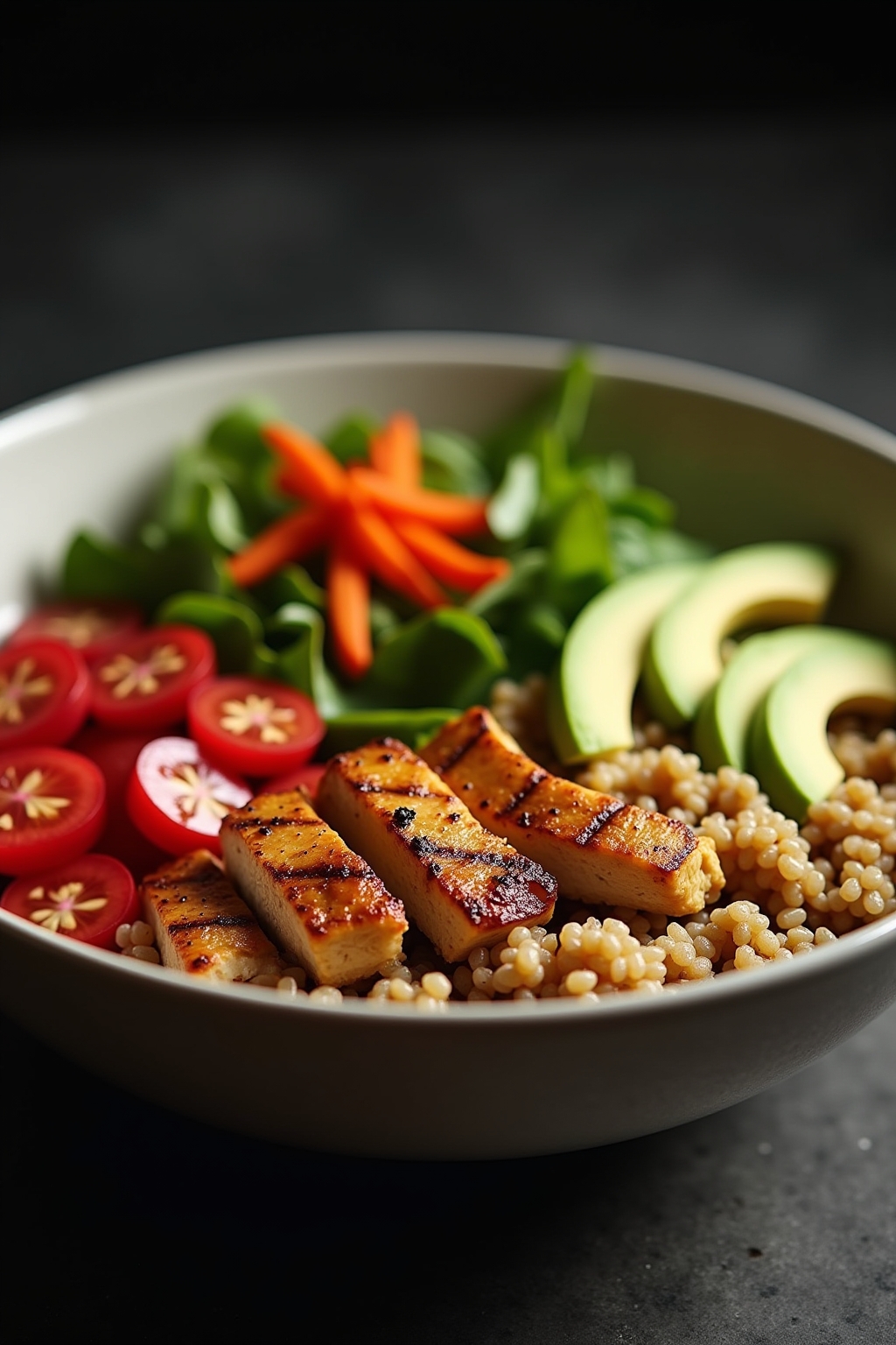 Nährwertbalance: Ideal kombinieren Bowls 50% Gemüse, 25% Protein (Fisch, Hülsenfrüchte oder mageres Fleisch) und 25% komplexe Kohlenhydrate wie Quinoa oder Süßkartoffeln.
