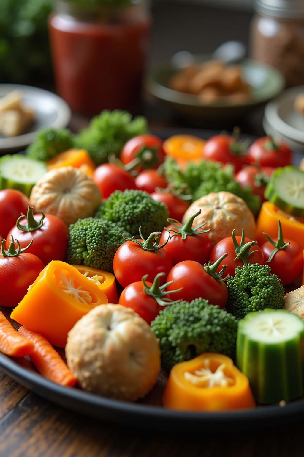 - Kreative Präsentation macht vegetarische Optionen zum Mittelpunkt des Party-Buffets.